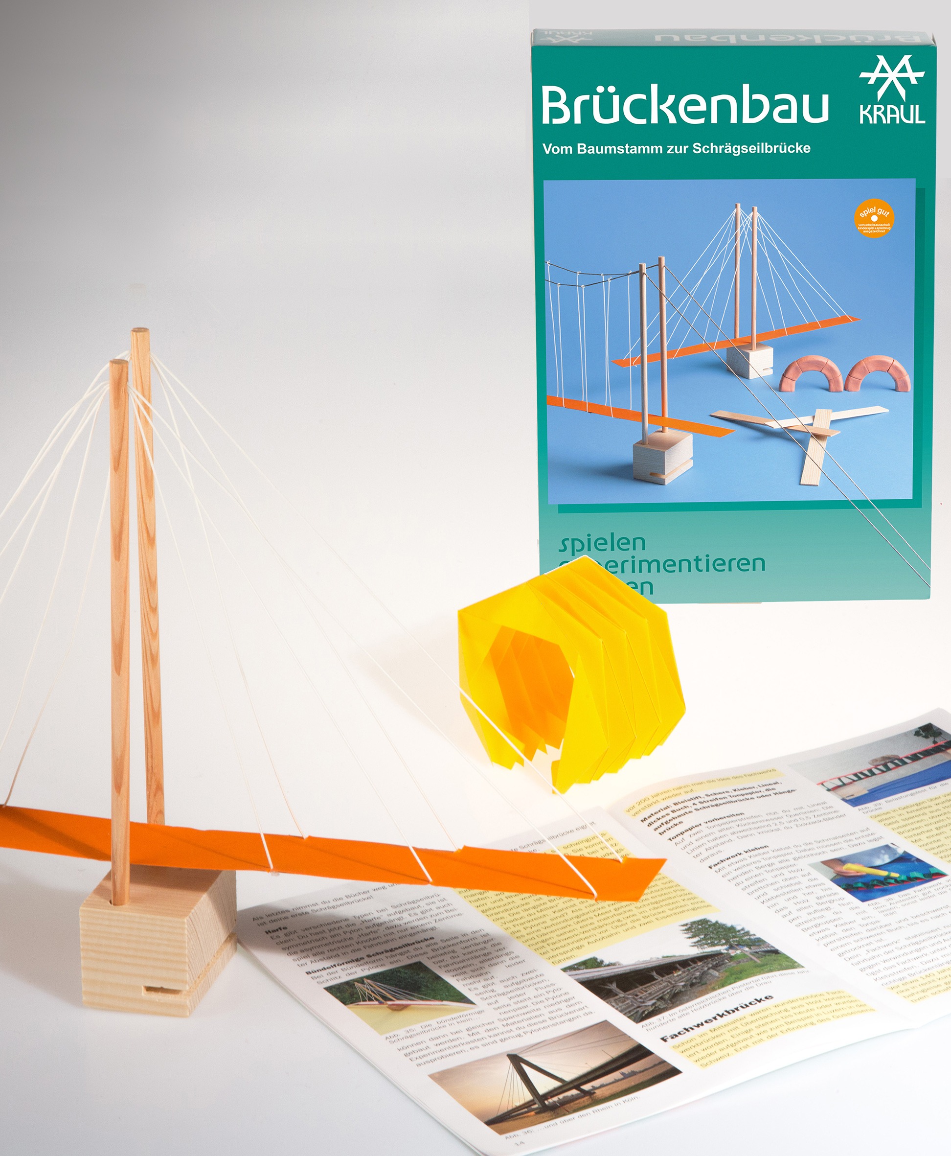 Brückenbau war schon immer spannend. Viele Brückenarten sind erfunden und weiter entwickelt worden, viele Brücken sind zusammengebrochen. Ein Brückenbauer muss viele Kräfte beachten, will er eine stabile Brücke bauen. Die verschiedenartigen Materialien und Techniken im Experimentierkasten machen die Vor- und Nachteile der einzelnen Brückenarten erfahrbar, das Anleitungsheft mit kurzen Streifzügen durch die Geschichte des Brückenbaus regt nicht nur zum Bau von verschiedenen Brückenmodellen an, sondern auch zum Bau einfacher Brücken über einen Graben oder Bach.