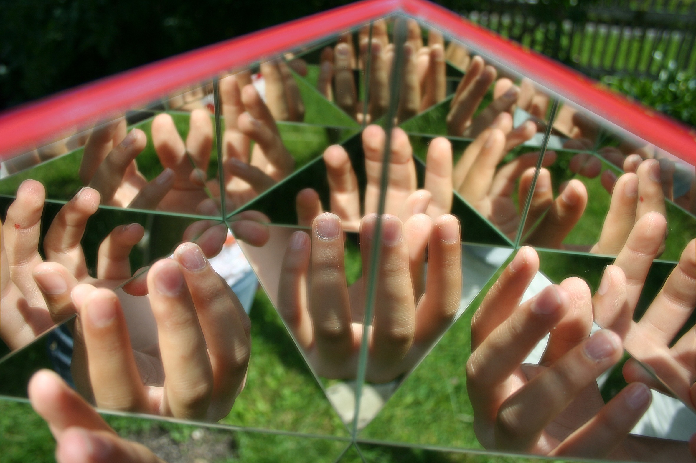 Das Kaleidoskop aus Holz mit Glasspiegeln verzaubert durch seine regelmäßigen und unendlichen Spiegelungen. Wir bevorzugen Glasspiegel (statt Spiegeln aus Kunststoff), weil die Spiegelungen viel klarer sind und weiter in die Unendlichkeit zu gehen scheinen.