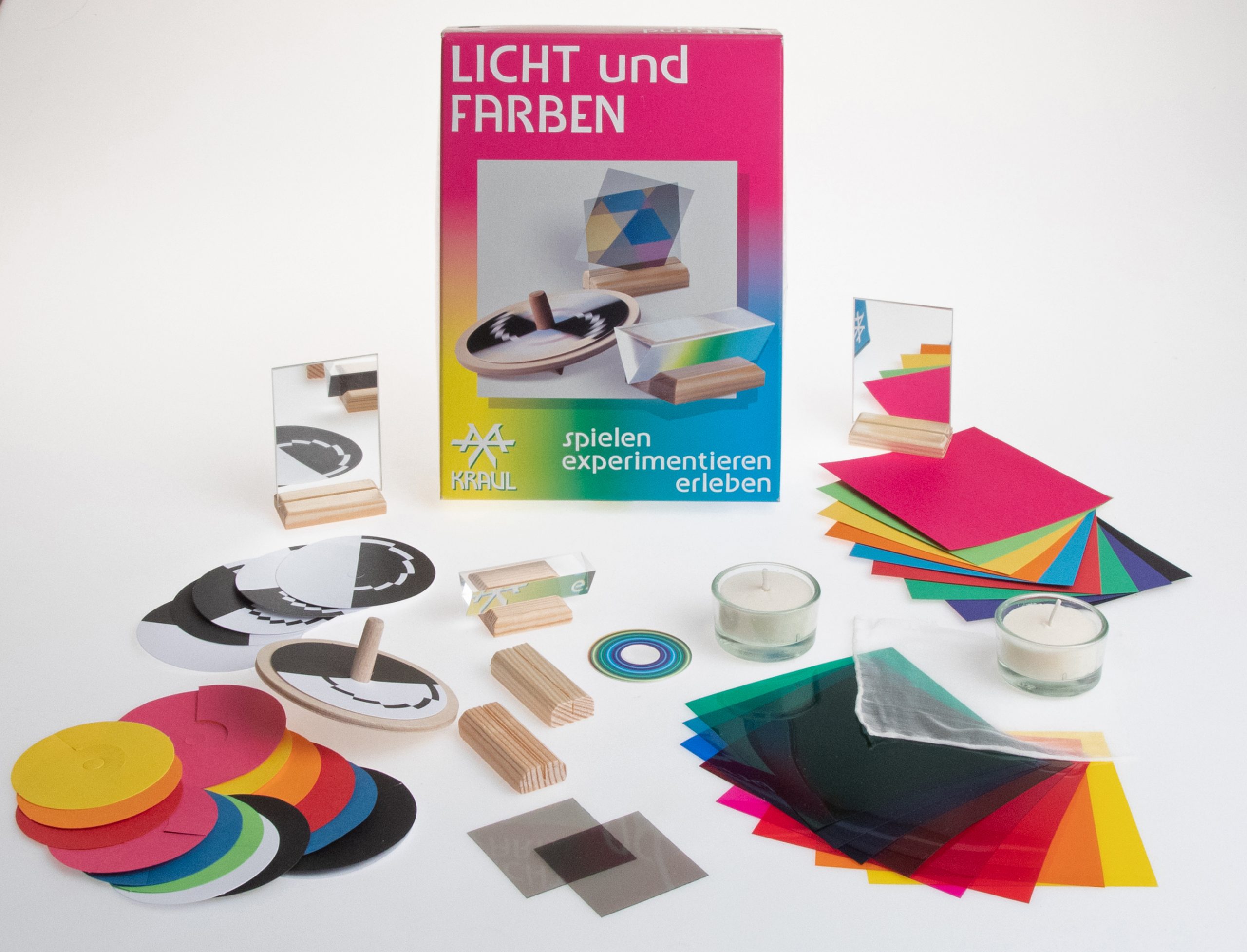 Ein weites und spannendes Experimentiergebiet sind Licht und Farben sowie ihre Entstehung und Wahrnehmung in Licht und Schatten. Komplementärfarben oder additive und subtraktive Farbmischungen, Farbkreisel, Prismenfarben, Polarisationsfilter und „Regenbogengucker“ laden ein, viele Phänomene im Alltag neu zu erleben und überraschen auch Erwachsene.
