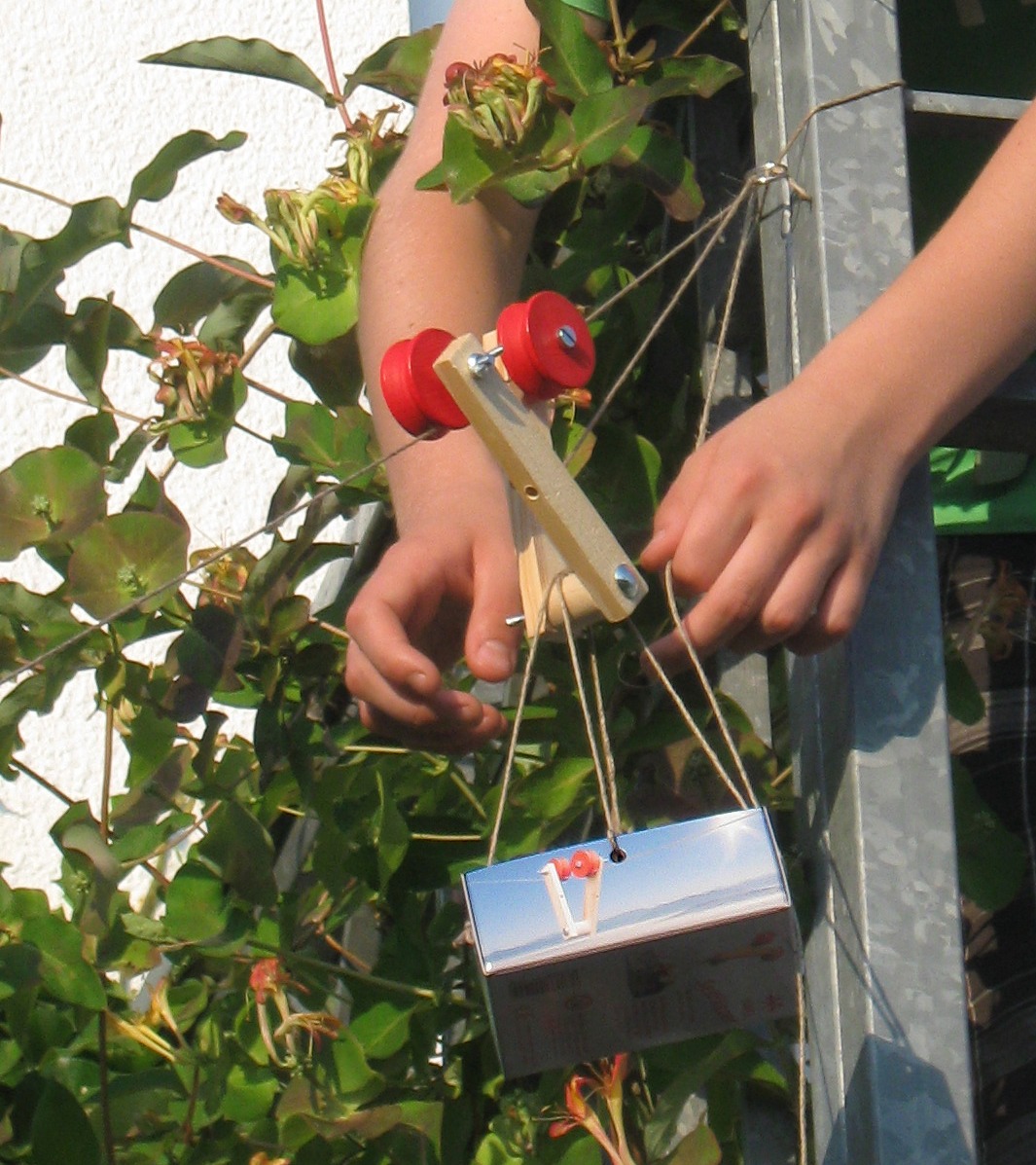 | Geliefert werden | Die Teile des Seilflitzers, wobei die Schachtel als Gondel dient, und 10 m Schnur |